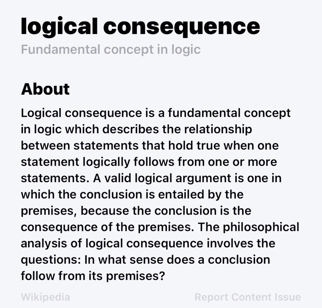 : a complex sentence in logic true if and only if each of its components is true see Truth Table —>to logically derive theorems.